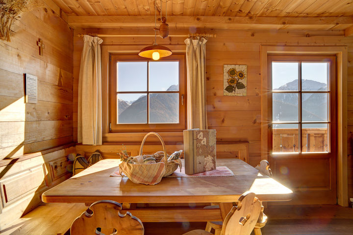 Unsere ebenerdige Ferienwohnung Abendglühn ist 75 m² groß und verfügt über zwei getrennte Schlafzimmer und ein Schlafsofa in der Wohnküche. Sie bietet Platz für bis zu sechs Personen – Highlight: der eigene Balkon Richtung Süden und die Liegewiese mit Blick auf die Ultner Bergwelt.